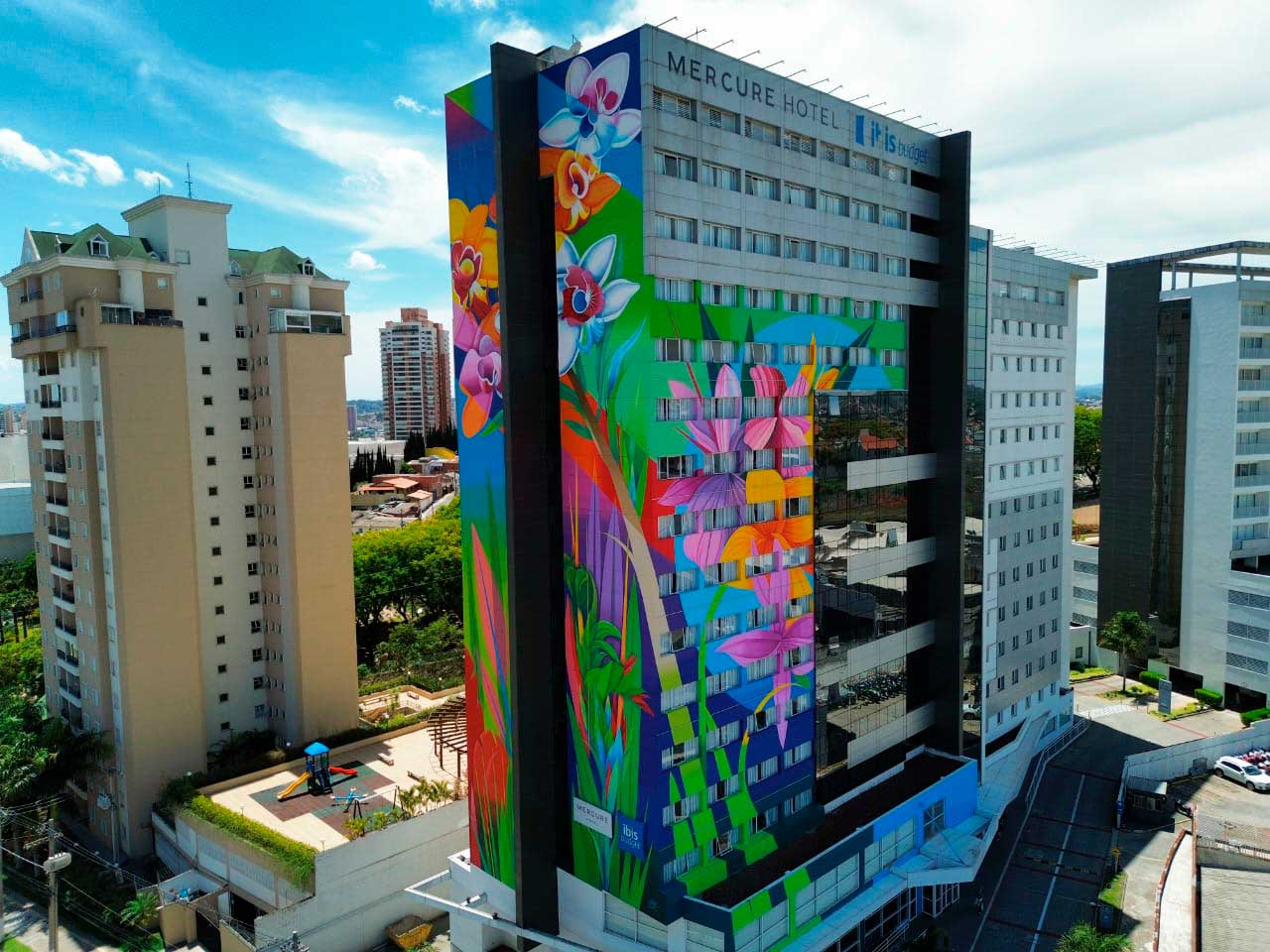 Hamilton grafita painel em arranha-céu de SP e ganha quadro de Senna