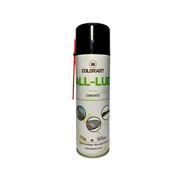 Desenvolvido para limpeza de componentes elétricos, eletrônicos e mecanismos delicados e de precisão, restaurando a condutividade. Sua fórmula é capaz de penetrar em espaços difíceis, deslocando óleo, graxa, sujeira e fluxos. ALL-LUB CONTATO possui secagem rápida e é ideal para uso em sistemas de injeção eletrônica, rolamentos, monitores, disjuntores, relês, transistores, relógios, câmeras fotográficas, entre outras aplicações.