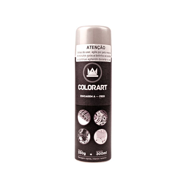 Tinta spray altamente durável. Protege metais em ambientes agressivos. Impede que a ferrugem e a corrosão se espalhem. Indicada para a zincagem à frio de peças de metal, em contato com salinidade e outros produtos corrosivos. Disponível somente em uma cor: Zinco.